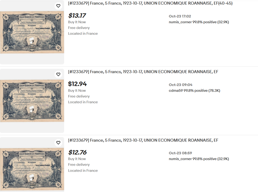 3 annonces à la suite sur e.bay USA. (Même numéro de billet)
