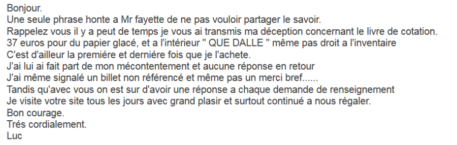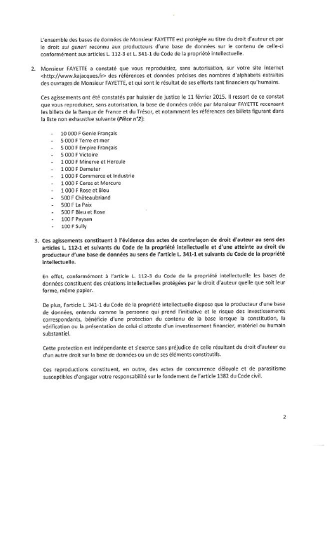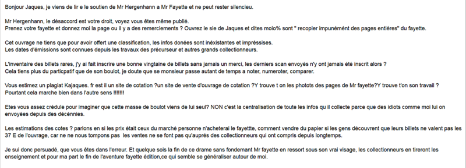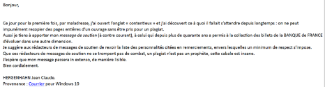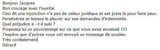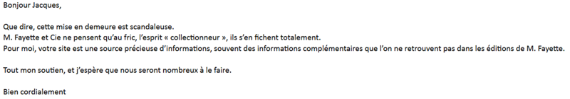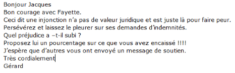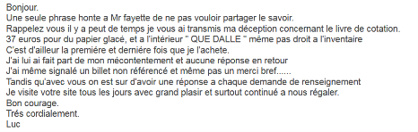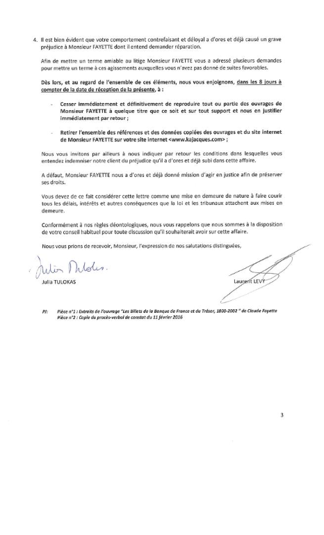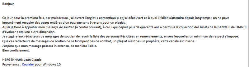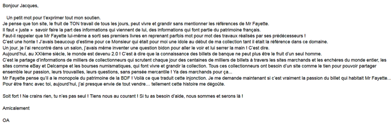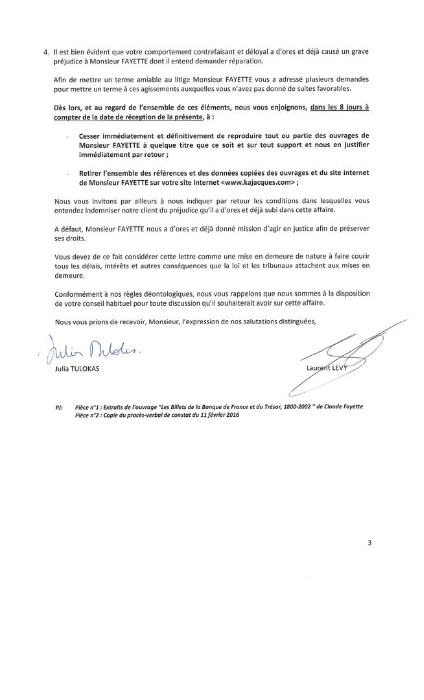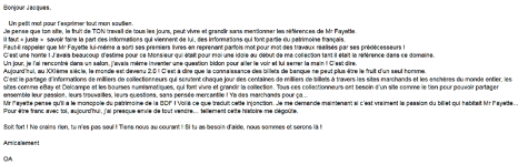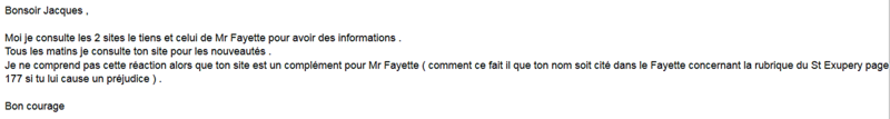 On me reproche de copier une partie du livre de C.Fayette, mais je reçois une copie de ce le livre dans mon courrier, émanant d'un représentant légal de M. Fayette.