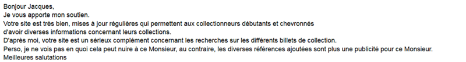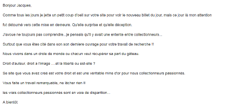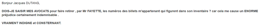 Au début de cette année, j'ai fourni à M. Fayette la preuve indiscutable émanant du site officiel des "copyright" qu'il n'avait aucun droit sur le site des billets fautés.