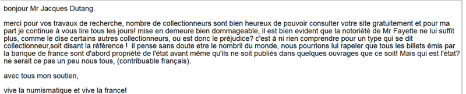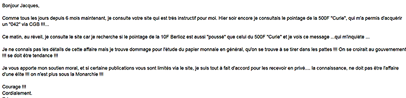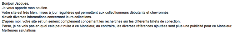 Certains sites sur le billet français ont déjà été fermés sous la pression et les menaces (allant jusqu'à des menaces de mort proférées en public) émanant de ceux qu'on nomme entre nous LES BARONS DE LA NUMISMATIQUE.