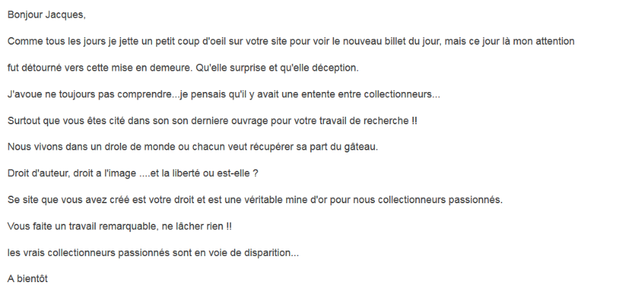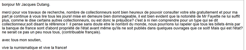 Durant deux ans, Monsieur Fayette m'a accusé d'avoir plagié le "site des billets fautés" dont il estimait avoir la co-propriété.. J'avais à l'époque, demandé à T.V. l'autorisation de prendre la suite de ce site qui était fermé (bien que toujours en ligne).