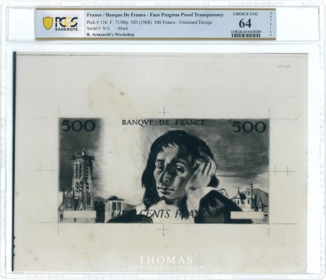 Epreuve du recto définitif sans n° ni signatures sur papier spécial blanc glacé.