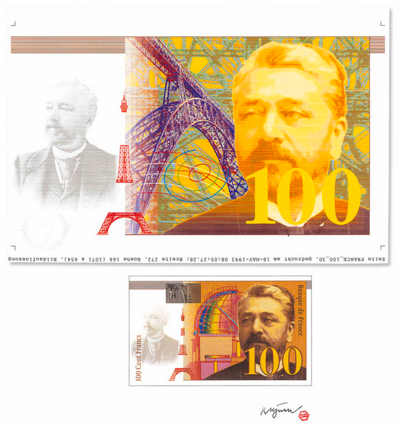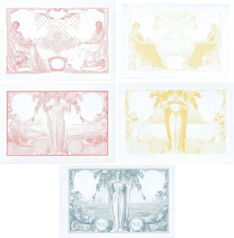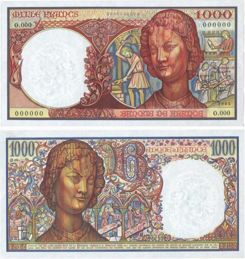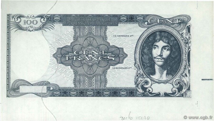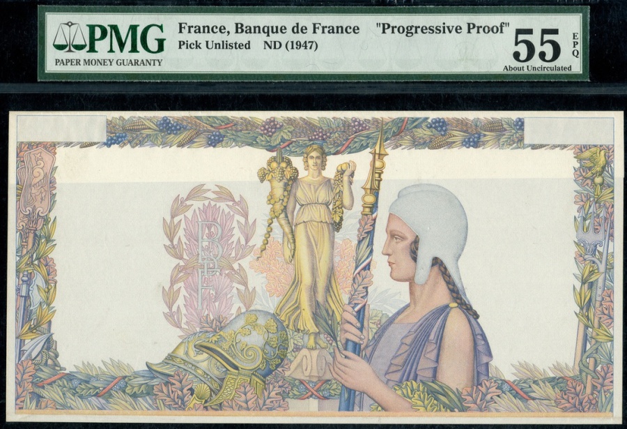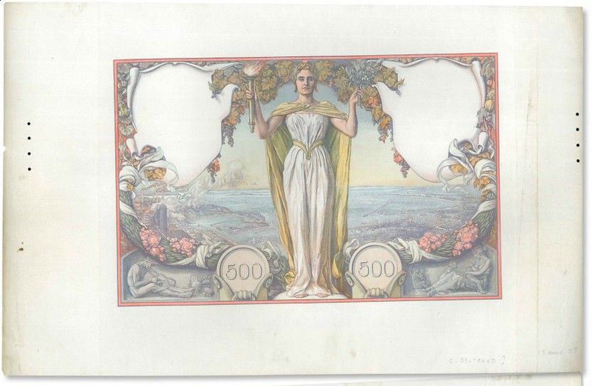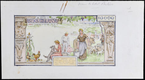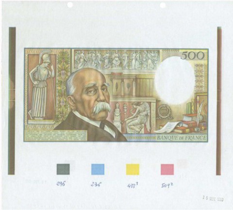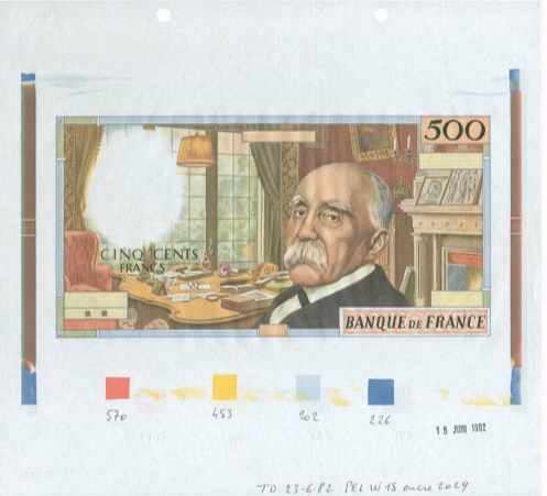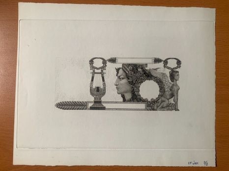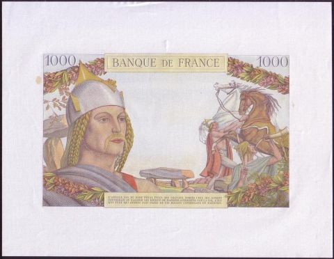 Epreuve uniface du recto. Manquent la valeur et "Banque de France".