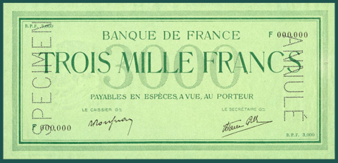 filigrane Bayard, numéroté 000, perforé SPECIMEN et ANNULE