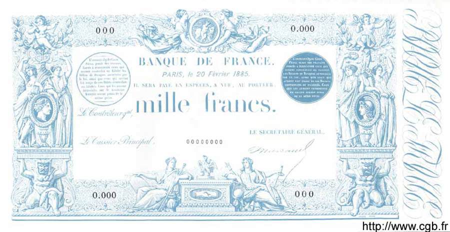 Epreuve uniface du 1000 F indices noirs F : A50