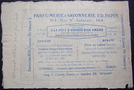 Publicité au dos d'un billet inspiré de l'assignat de 1000 F mais en petit format (16,5 x 11,5 cm), imprimé à Lyon.