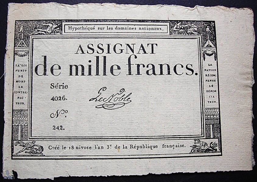 Assignat de 100 LIVRES, valeur fictive sur un modèle d'assignat de 5 livres