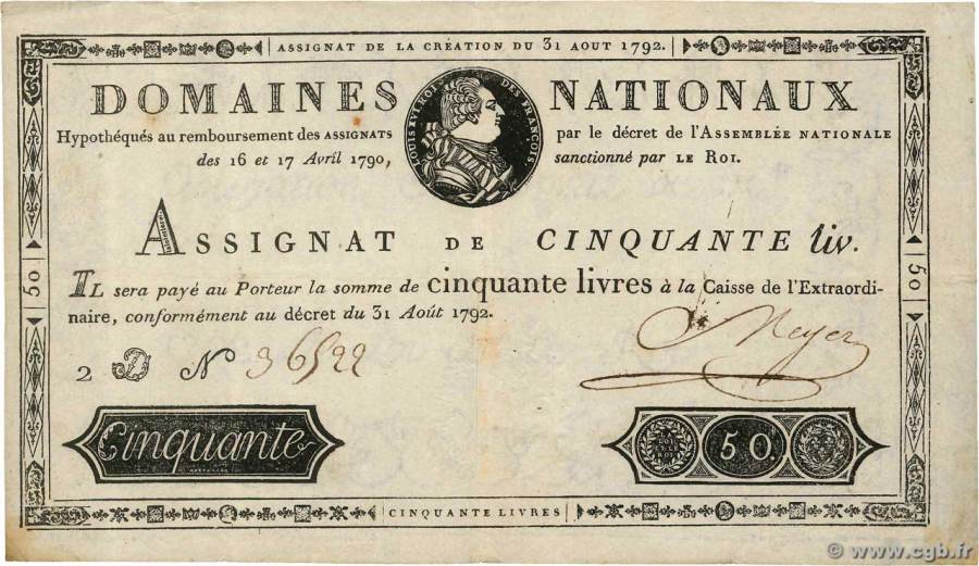 50 LIVRES du 31 août 1792