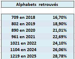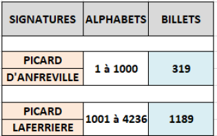 Les numéros d'alphabet ont été relevés dans l'ouvrage de C. Fayette de 1990 (Répertoire des dates de création)