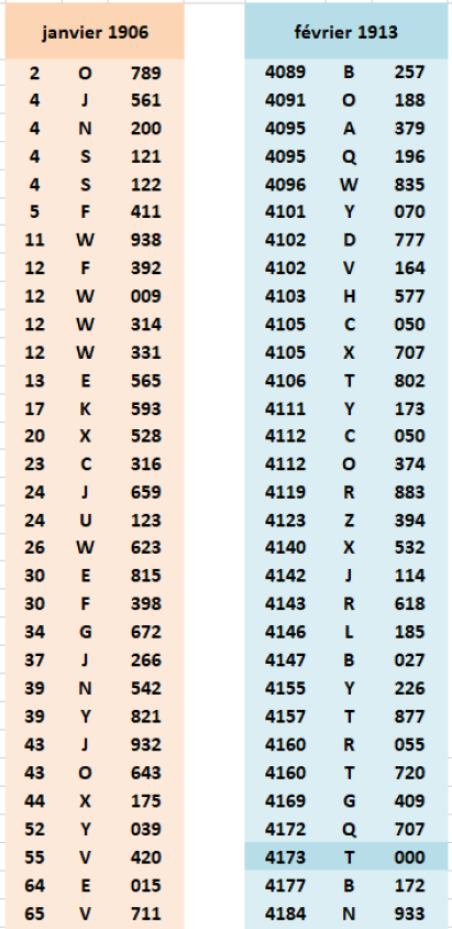 A partir de l'alphabet 4001, ajout d'un 9ème chiffre au numéro de contrôle (le 25 janvier 1913)