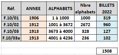 Ce qu'aurait pu être le tableau des références, s'il avait suivi la même logique que les 5F noir et 5F bleu (une référence par mois d'émission)