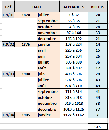 Mise à jour le 29 avril 2022 - 404 billets (656 billets dans l'inventaire Fayette/kajacques)
