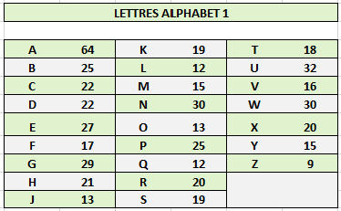 Pour la référence F.67/19, j'ai retenu la lettre B, la moins chère des 5 lettres de l'alphabet 74 et aussi la plus courante.