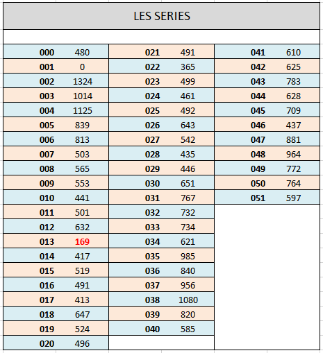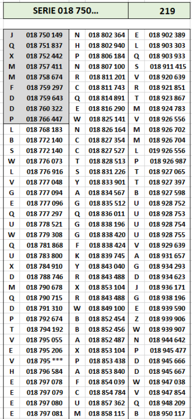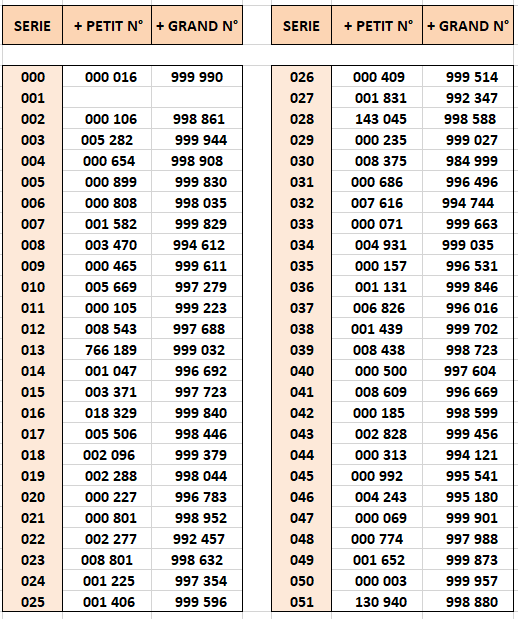 Les numéros en gris sont des billets qui se retrouvent déclassés (voir note plus bas)