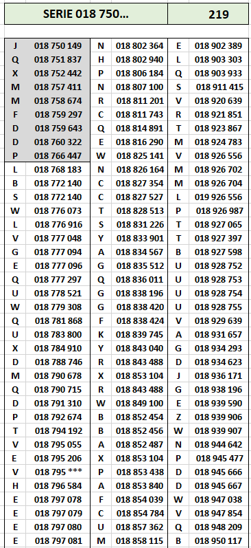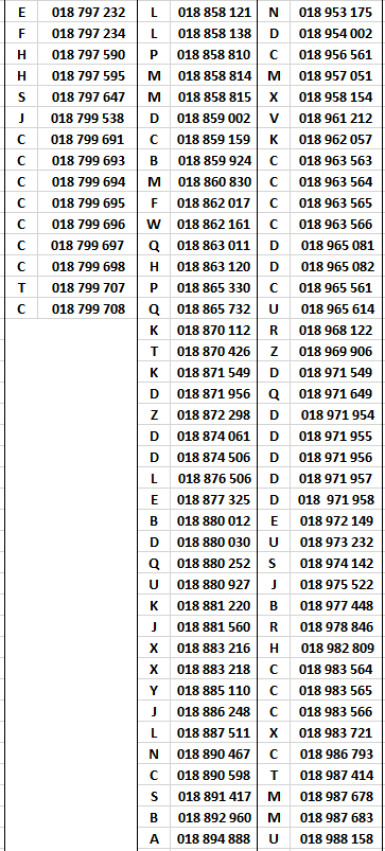 On ignore encore de quel type sont les billets dont les numéros sont compris entre 018 766 447 et 018 766 147