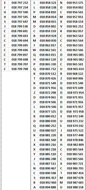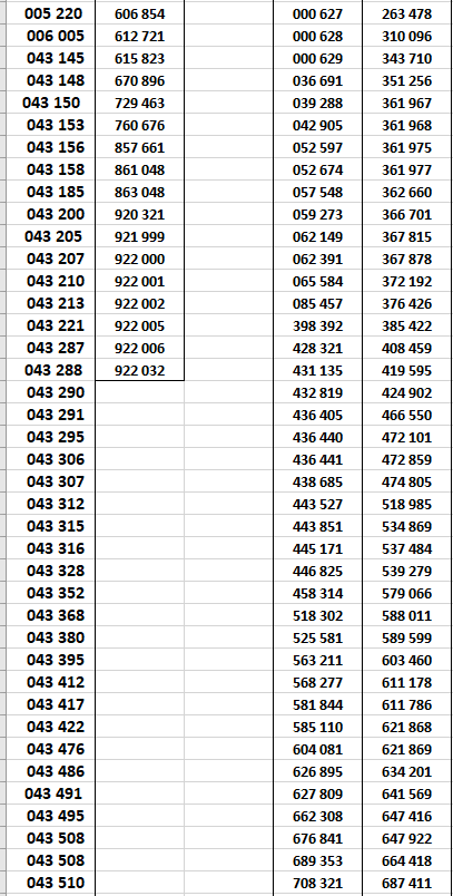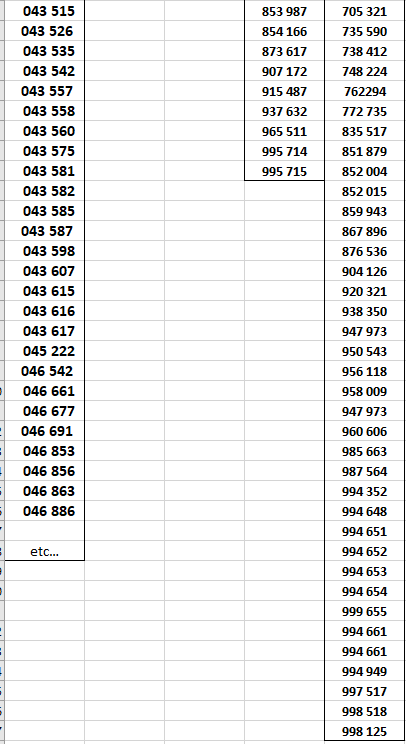 Je ne publie ici que les numéros supérieurs à 900 000