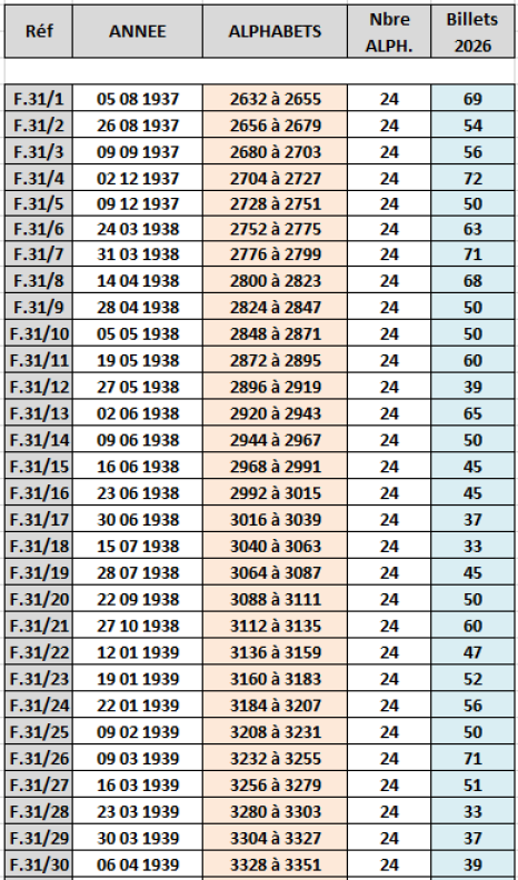 Plus grand numéro connu : A.3980 527 (Numiscollections 2022)