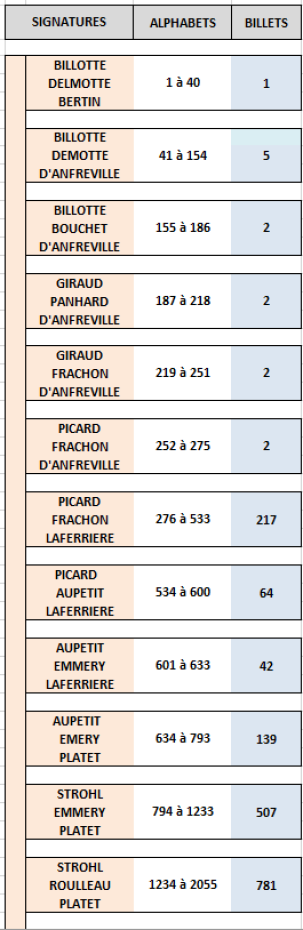 En vert, le total des cotes pour une série complète relevée dans les différents catalogues