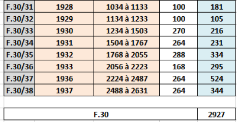En haut du tableau, les années en rouge correspondent aux ouvrages généraux de C.F.