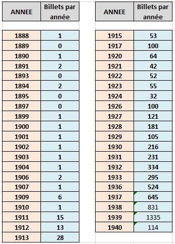 les années en noir correspondent aux éditions de "La €ote"