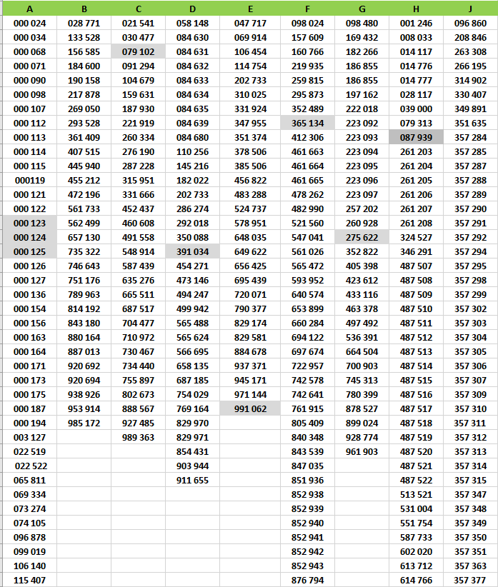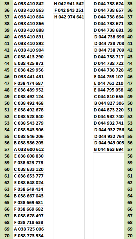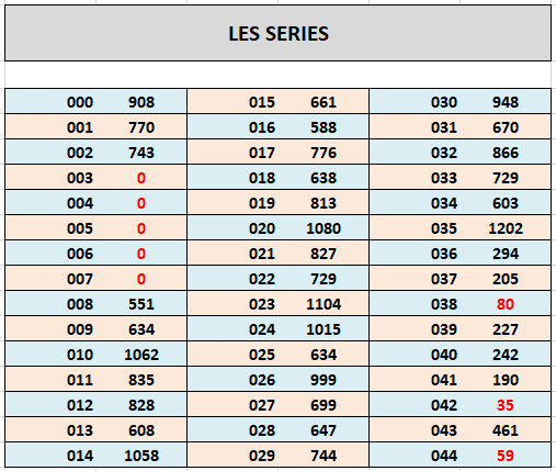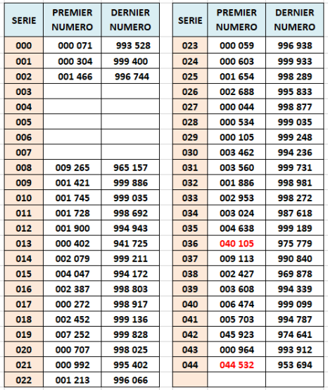 Les séries 000 à 035 sont complètes (sauf 003 à 007 inexistantes)