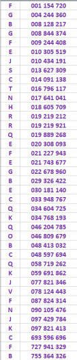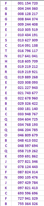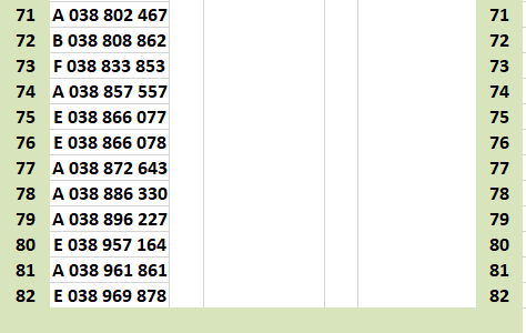 Pour la série 036, seules 3 lettres ont été retrouvées pour l'instant : D, E et F