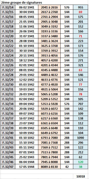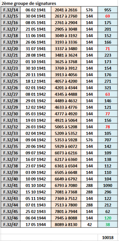 2ème et 3ème ligne : les années entrées dans l' !NVENTAIRE