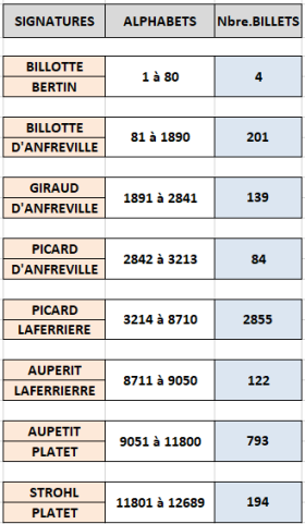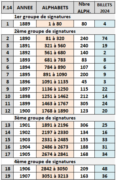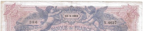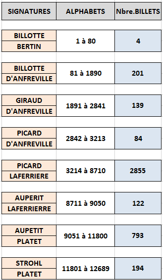 - type 1889 "Bleu et rose" modifié 1892 "ramie" adapté 1911 (BDF191101) : ajout d'un 9ème chiffre au n° de contrôle, à partir de l'alphabet 4001