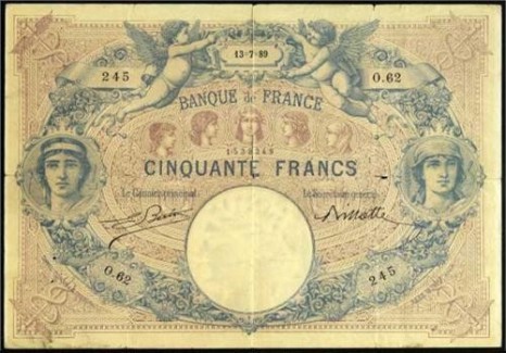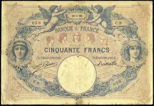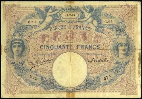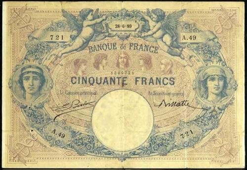 - 50F BDF type 1889 "Bleu et rose" (BDF 188803)