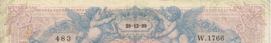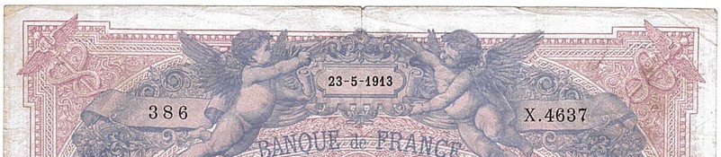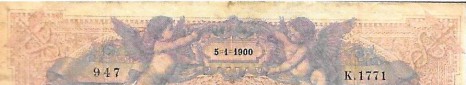 - type 1889 "Bleu et rose" modifié 1892 "ramie" adapté 1900 (BDF 190001) : l'année de création est écrite en 4 chiffres en raison de l'entrée dans le XXème siècle, à partir de l'alphabet 1768