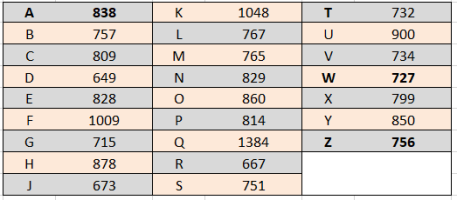 Indice de fréquence : 28 / 100 (entre le 20 Pêcheur et le 5F Pasteur)