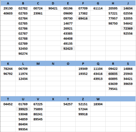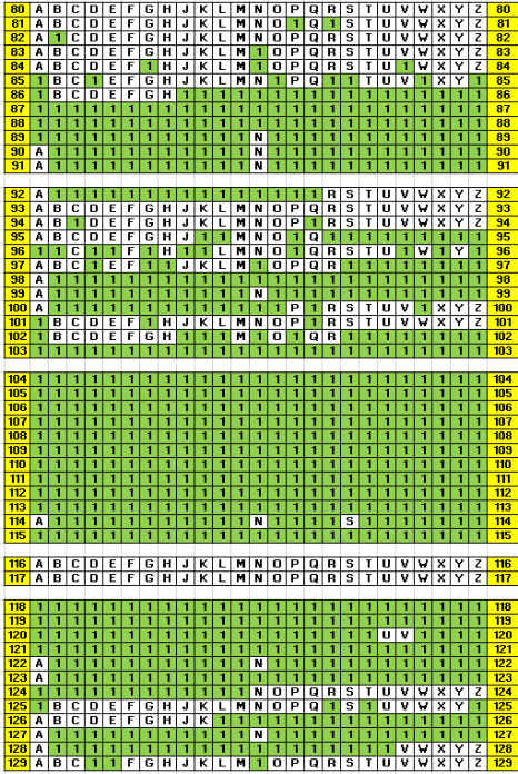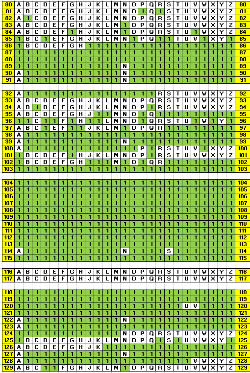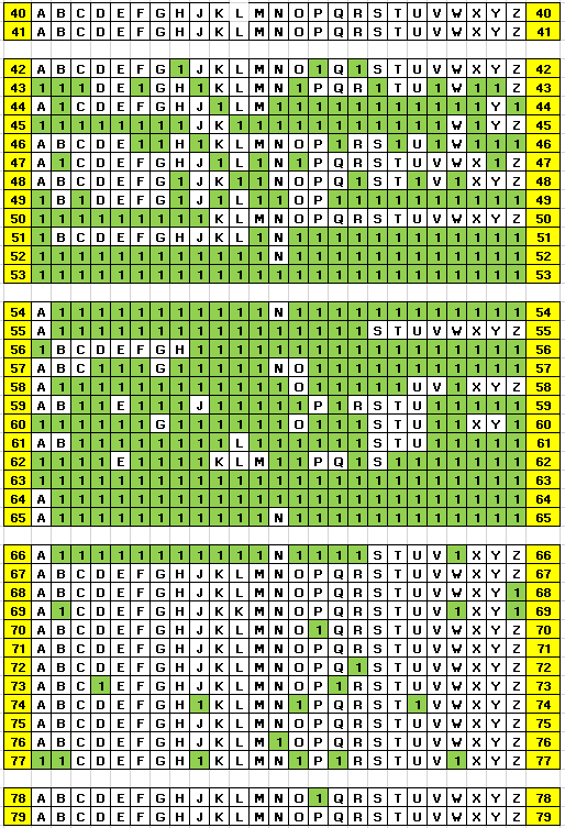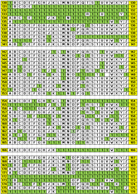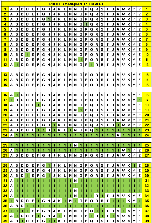 Les combinaisons manquantes alphabet/lettre sont en vert.
