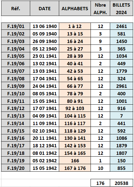 Cotation identique pour un billet de l'alphabet 167, du 173 très rare, du 175 très recherché et du 176 rarissime.