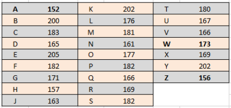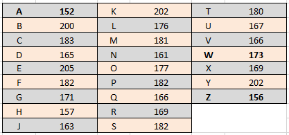 Le plus grand écart entre deux alphabets retrouvés est de 55 entre les alphabets 8246 et 8301