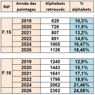 Pourcentage des alphabets retrouvés