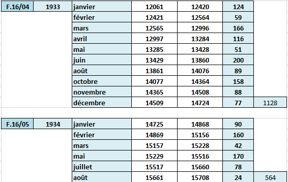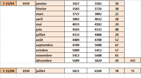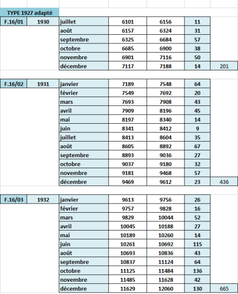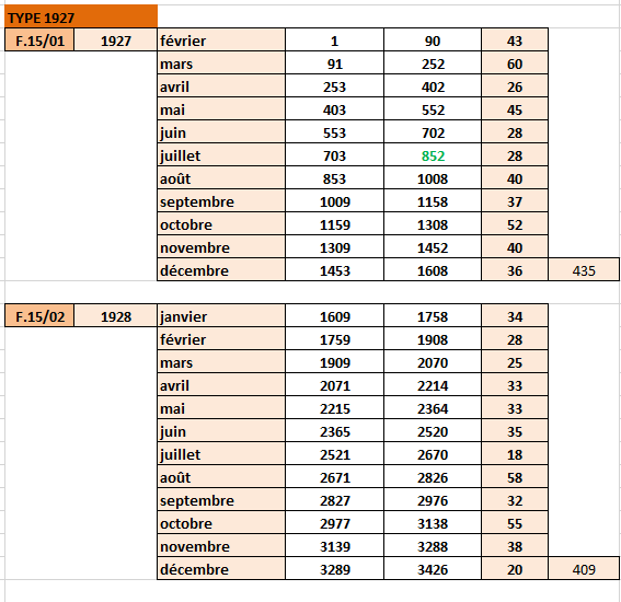Le tableau est entièrement fauté en ce qui concerne le moIs de juillet 1927.