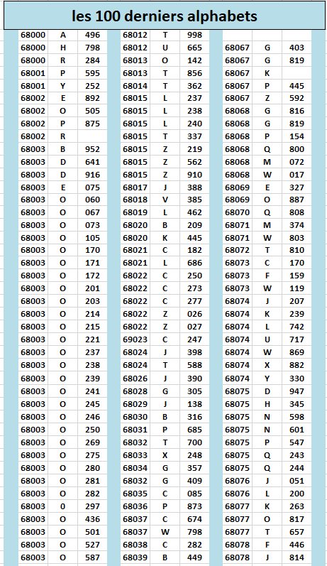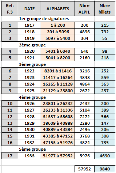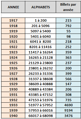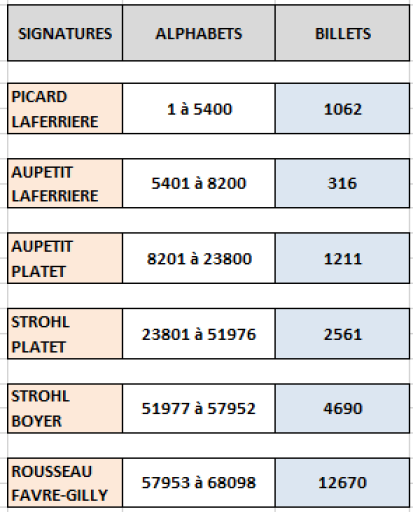 Mise à jour le 25 octobre 2021 - 15267 billets (9561 alphabets retrouvés)