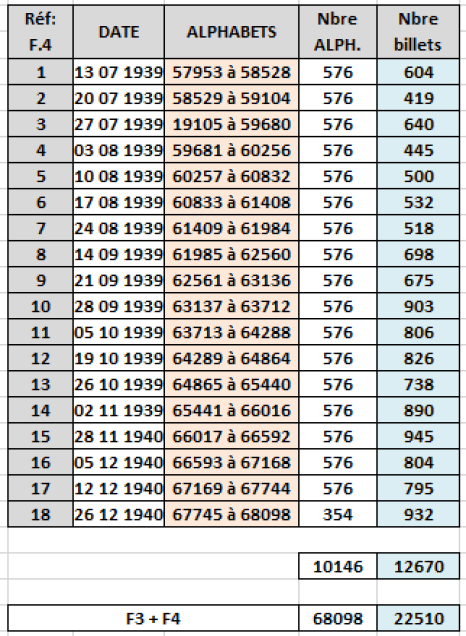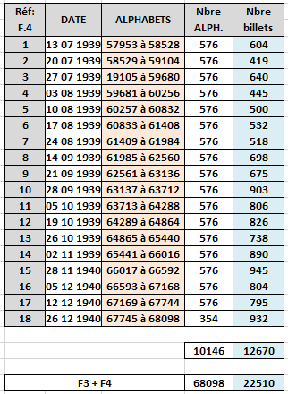 En vert, le total (un billet de chaque référence F.3 et F.4)