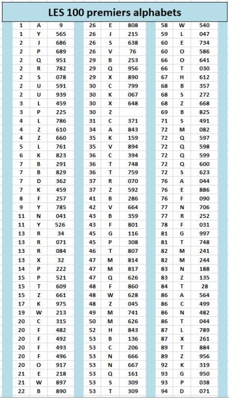 Mise à jour le 24 octobre 2022 - 16912 billets (10341 alphabets retrouvés)