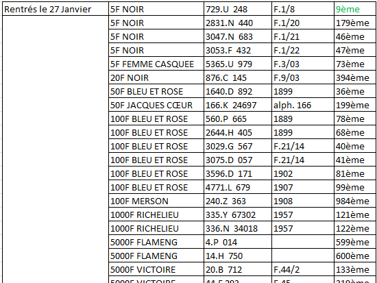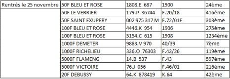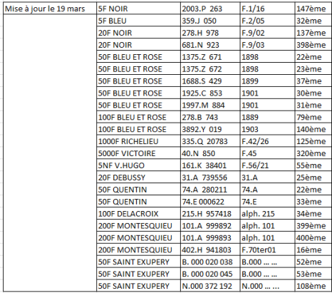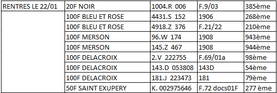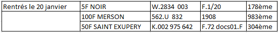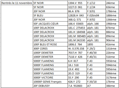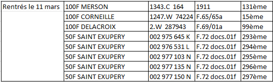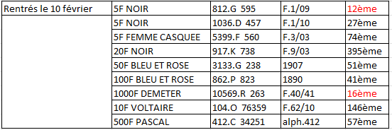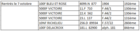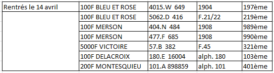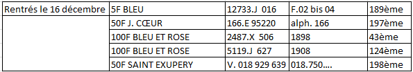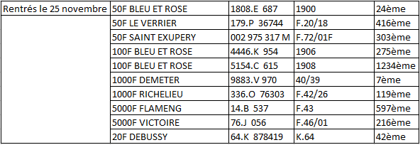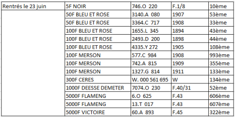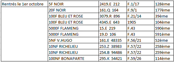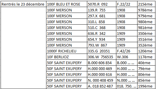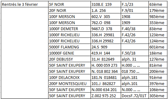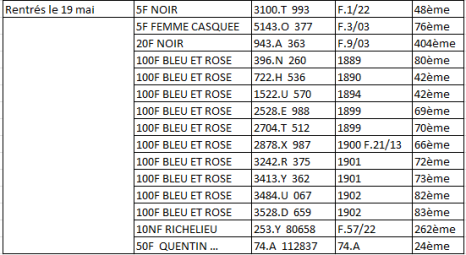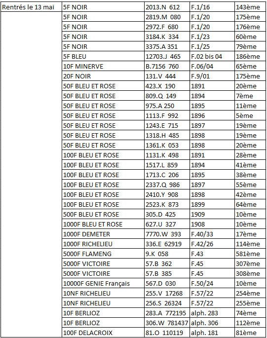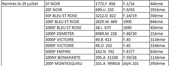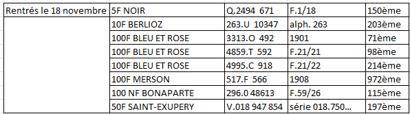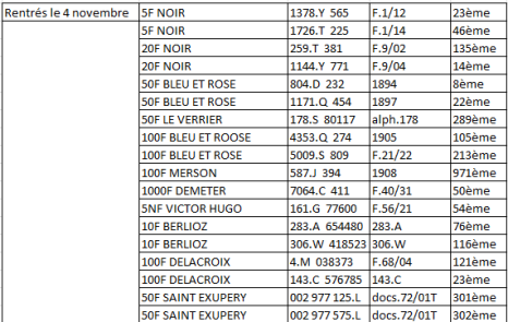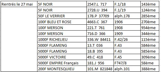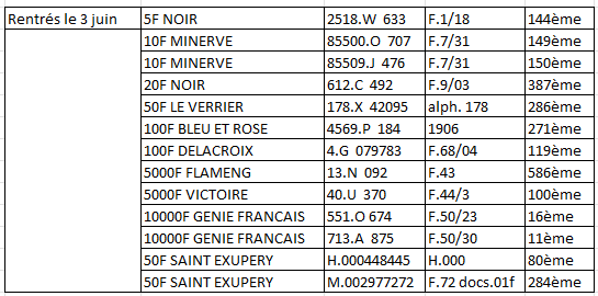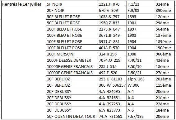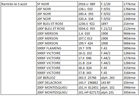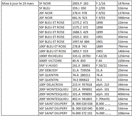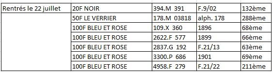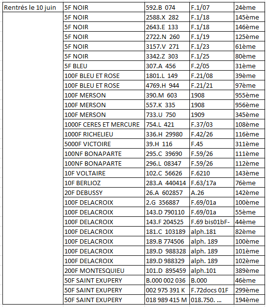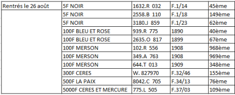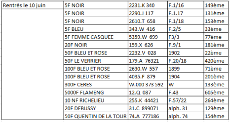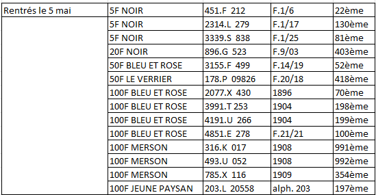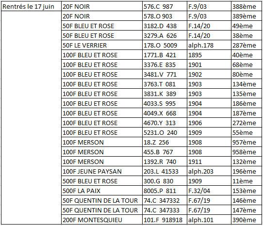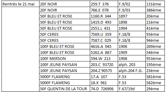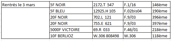 Tous les numéros des billets ont été relevés dans les mêmes conditions, sans utiliser les divers inventaires connus par ailleurs.