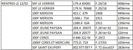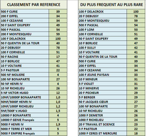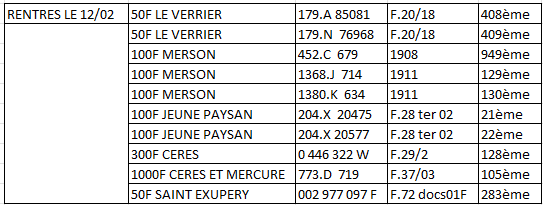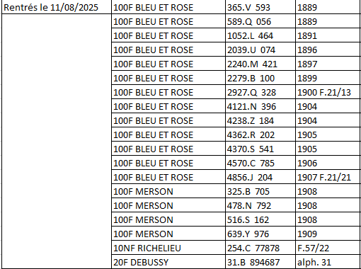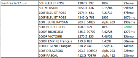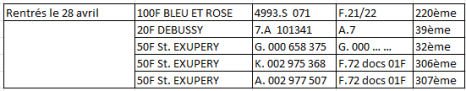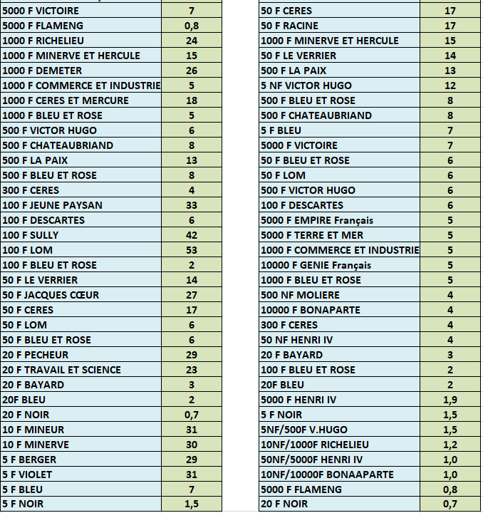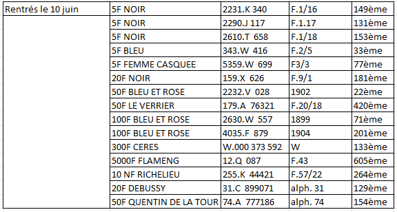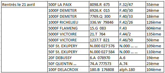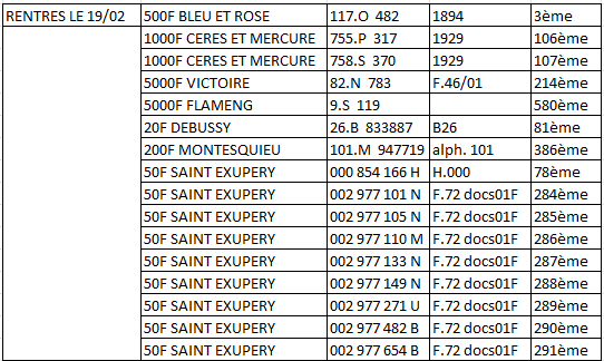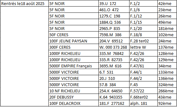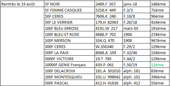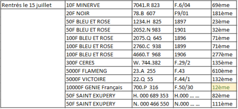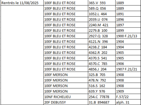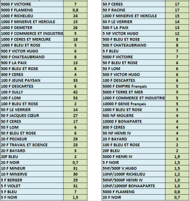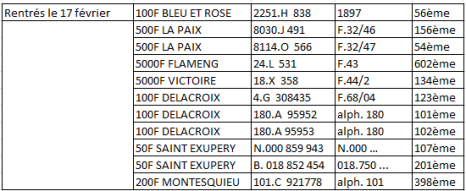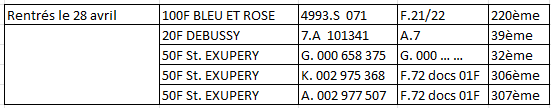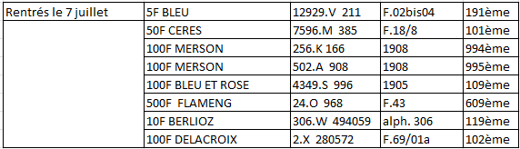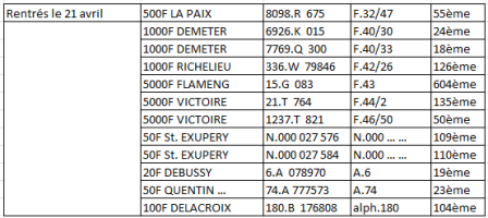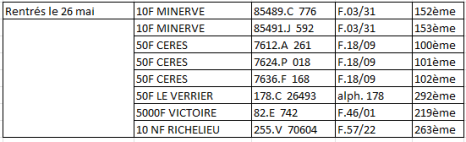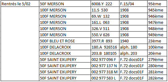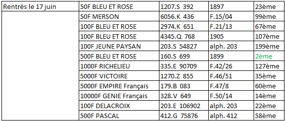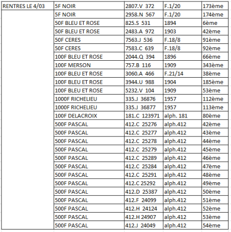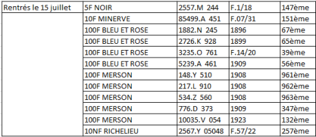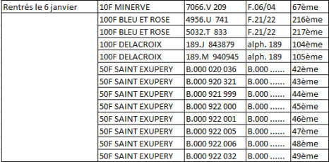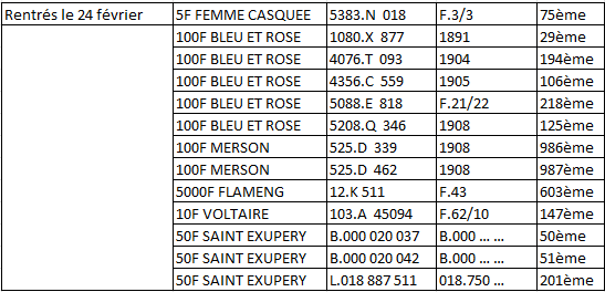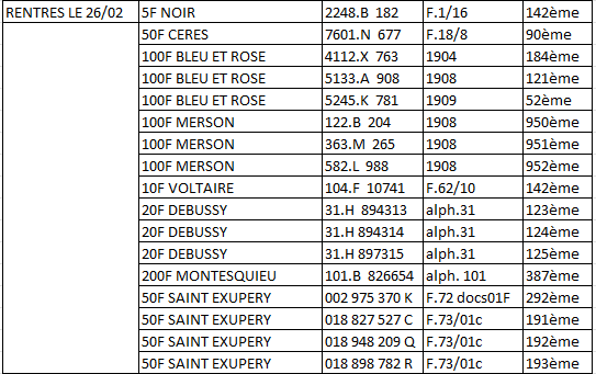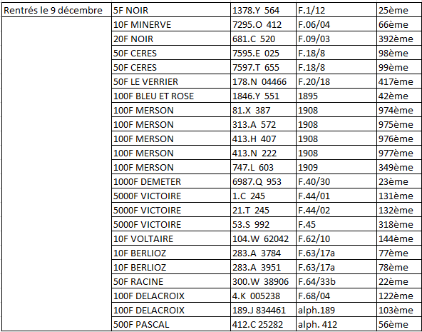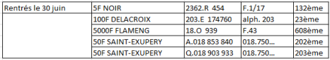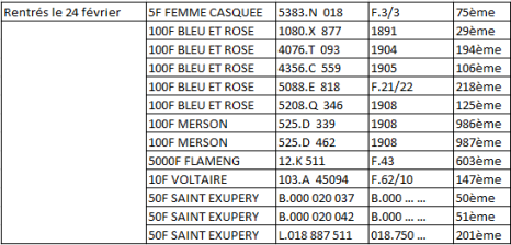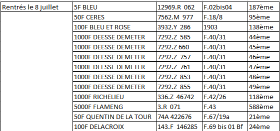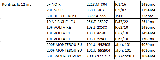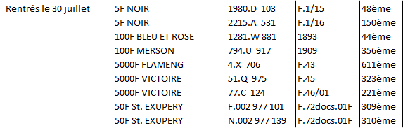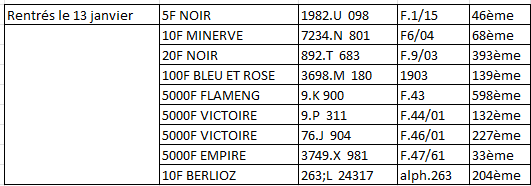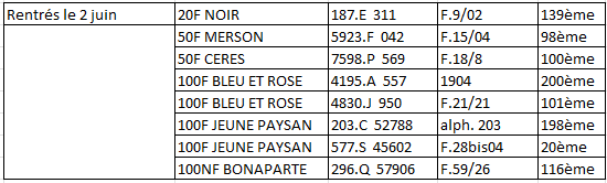 Tous les numéros des billets ont été relevés dans les mêmes conditions, sans utiliser les divers inventaires connus par ailleurs.