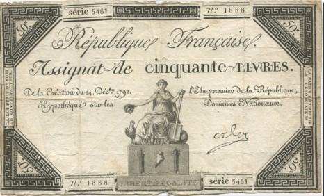 Plus grand numéro connu pour l'assignat de 50£ : 5461