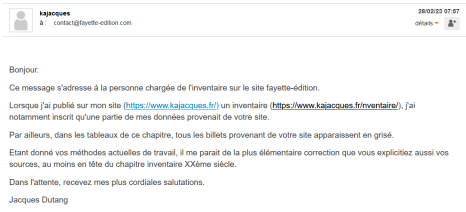 En 2023, 332 billets ont été ici ajoutés à l'inventaire Fayette / Kajacques