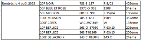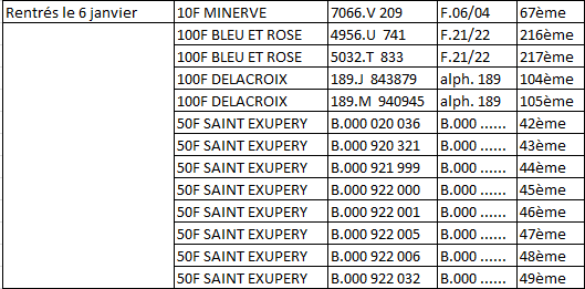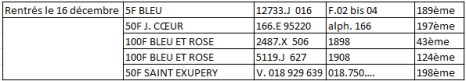 Des billets retrouvés dans une liste sans numéro d'ordre ont également été ajoutés :
