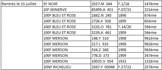 Rentrés le 06/02 | 10F MINERVE | 7251.O 367 | 1920 | 62ème |