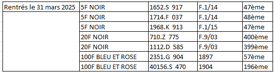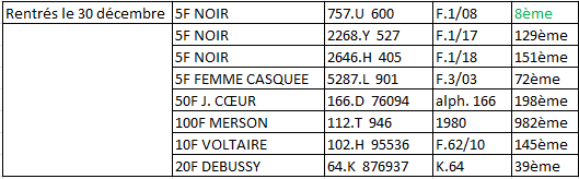 Rentrés le 26/12 | 5F NOIR | 2948.U 889 | F.1/20 | 172ème |