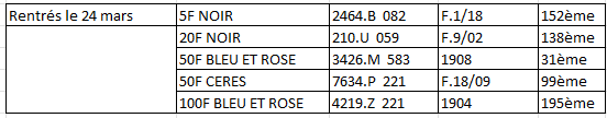 Rentrés le11/12 | 5 NOIR | 1949.Z 537 | F.1/15 | 45ème |